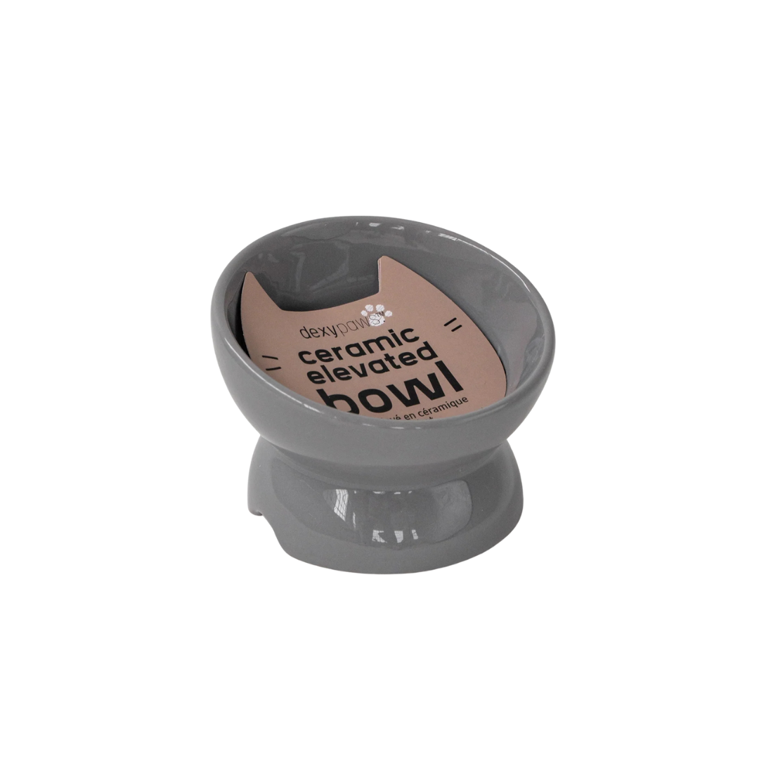 Dexy Paws Cat Ceramic Elevated Bowl - Grey