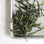 Light, crispy green bean toppers made for pups who turn up their noses at veggies. These treats are gently dehydrated and enhanced with a drizzle of raw honey, coconut oil, and hemp hearts to add flavor, healthy fats, and a touch of sweetness.