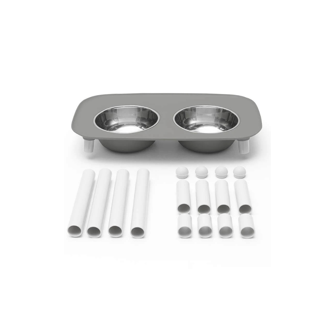 Elevated Double Dog Feeder, Adjustable Height, Light Grey