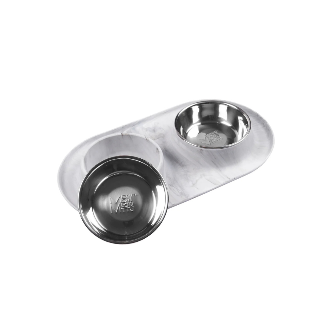 Double Silicone Cat Feeder with Stainless Steel Bowls, Marble Design