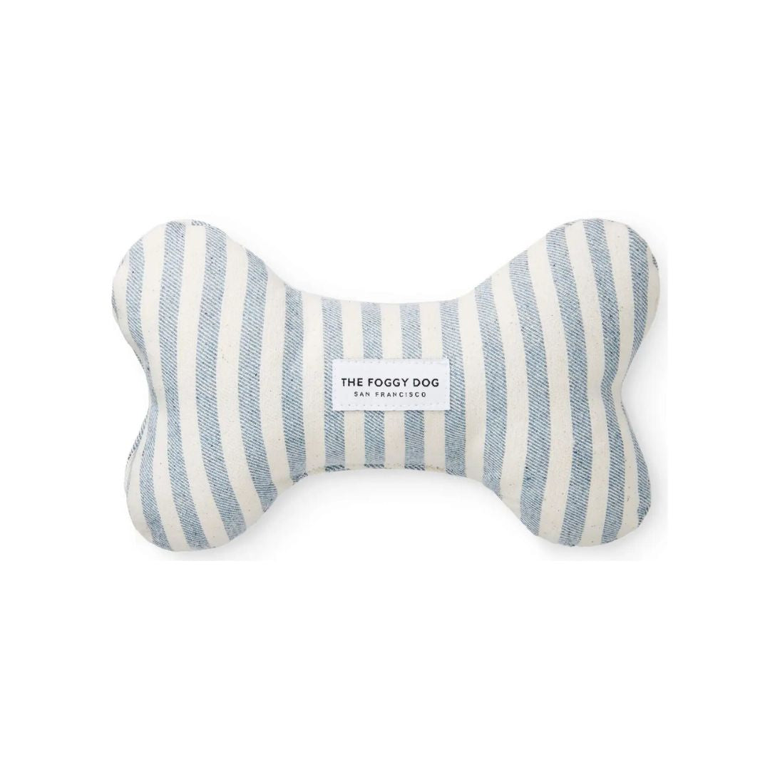 Upcycled Denim Stripe Dog Bone Squeaky Toy
