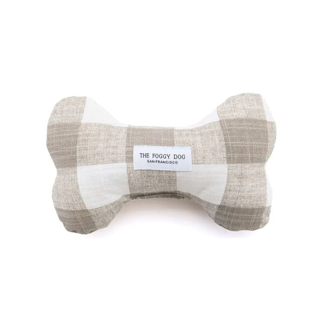 Warm Stone Gingham Dog Bone Squeaky Toy