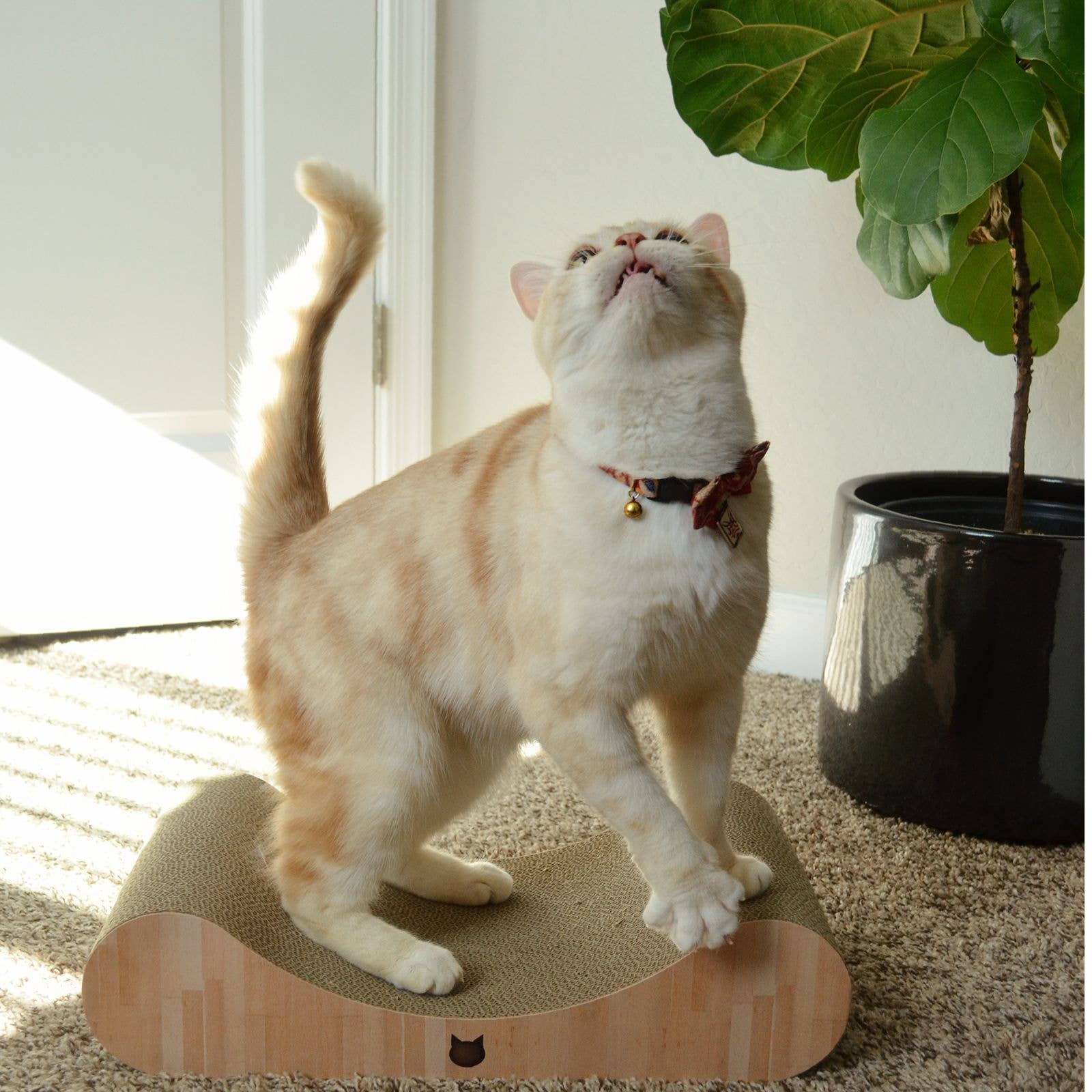 • Ergonomic curved design provides roomy comfort for cats to scratch, stretch, and relax