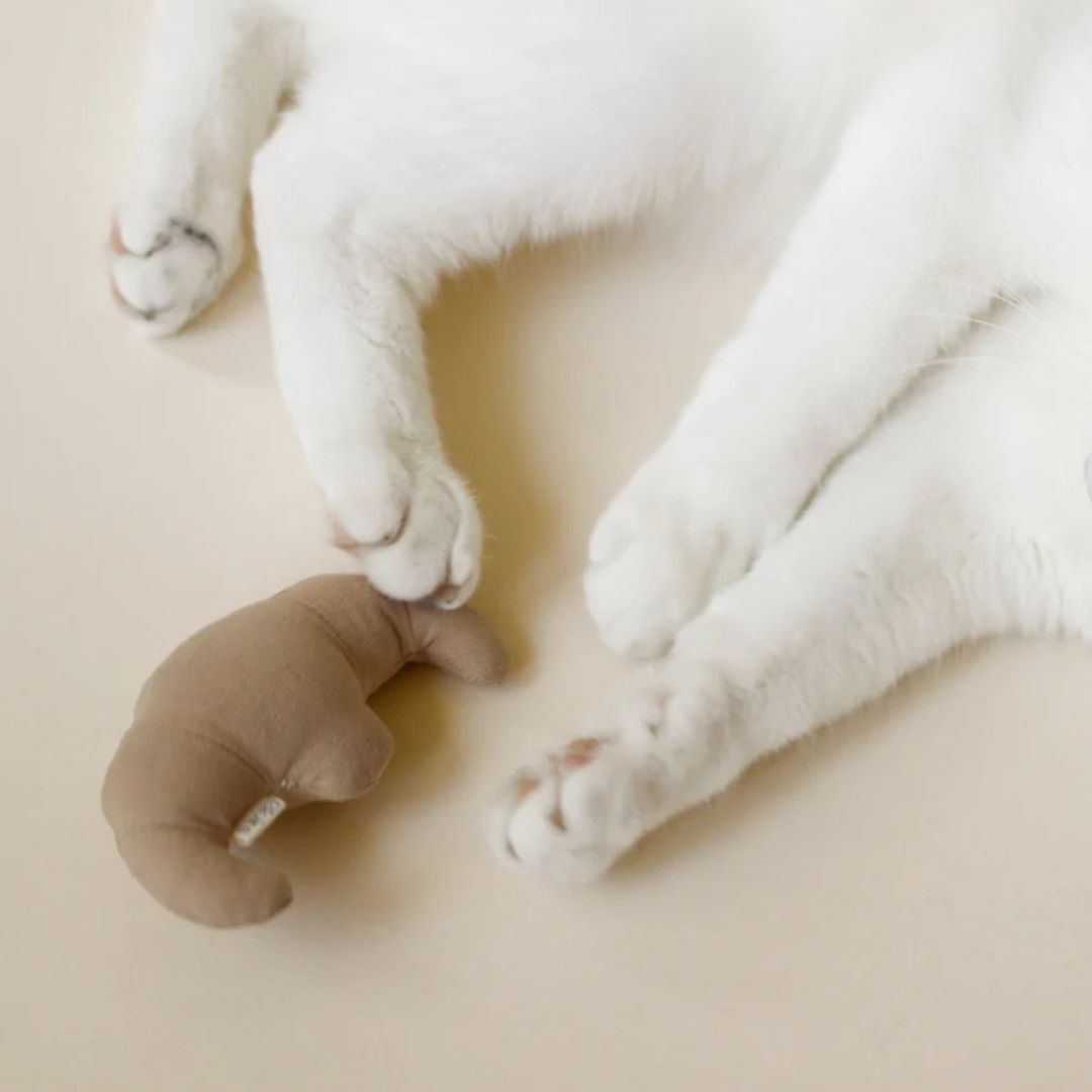 Bring a little Parisian charm to playtime. This croissant-shaped toy is soft, crinkly, and irresistibly stuffed with premium catnip to keep your cat batting, pouncing, and kicking for hours. Made from natural cotton and linen, it’s lightweight enough for tossing around yet durable enough to handle daily play.