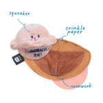 Turn snack time into a nose-work adventure: this plush strawberry ice cream toy features squeakers, crinkle sounds and a hidden treat pocket inside.