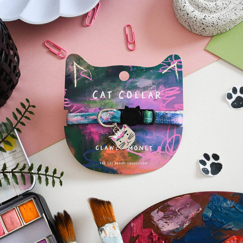 Bring a little impressionist flair to your feline with the Clawed Monet collar — Niaski’s playful reimagining of Claude Monet as a whiskered muse. Soft, durable, and fully adjustable, it includes a matching enamel charm and a safety breakaway clasp so your art-loving kitty can explore in style.
