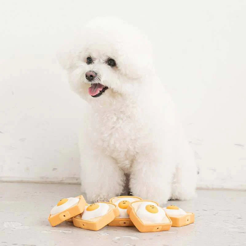 Bite Me Squeaky Egg Toast Dog Toy