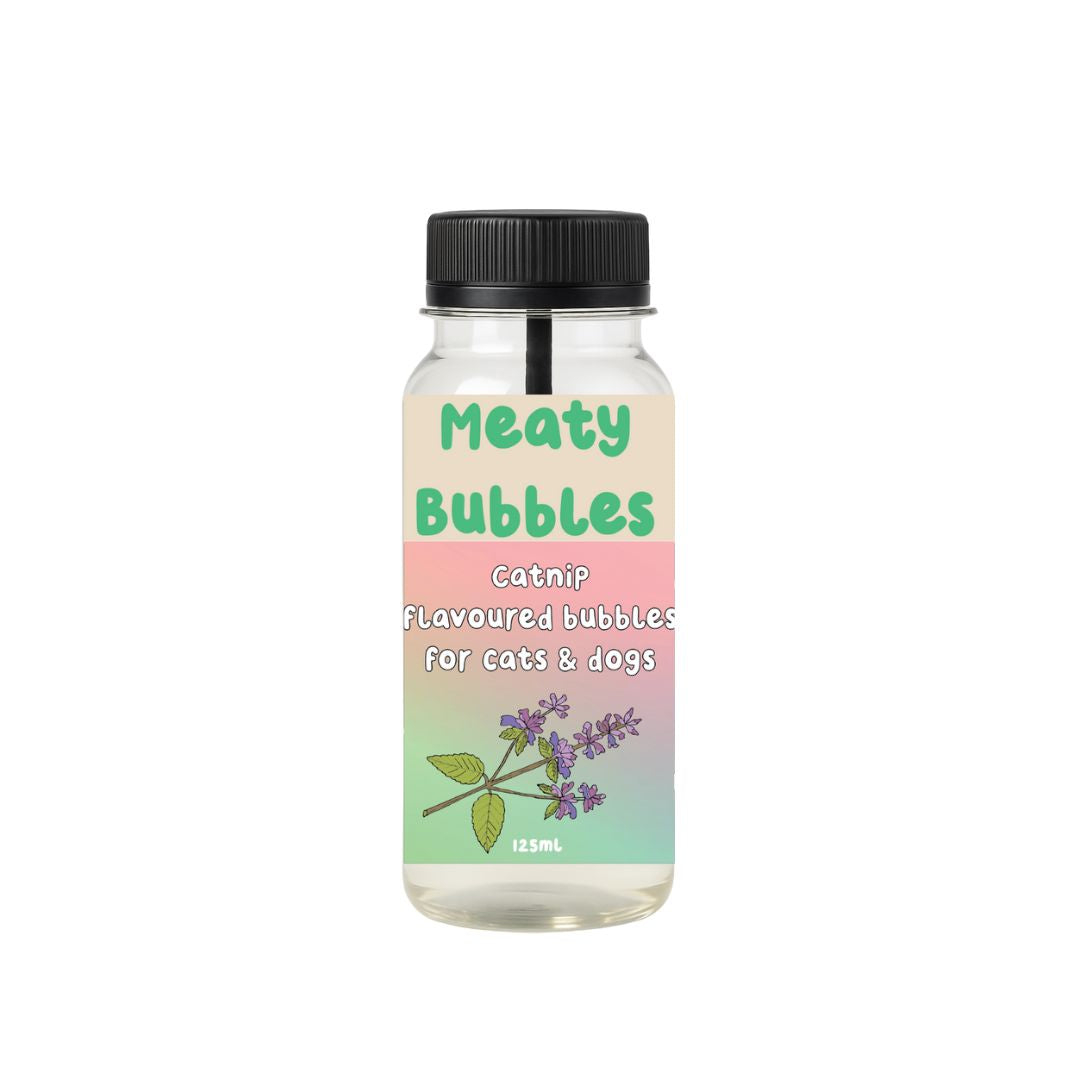 Treat your furry friend to a burst of fun with Meaty Bubbles in Catnip. These pet-safe bubbles are non-toxic, vegan, and gluten-free, making playtime both exciting and worry-free. Handcrafted in a clean room facility in North Wales, UK, every bottle delivers high-quality, flavorful bubbles your pet will love to chase and pop. With new flavors launching regularly, Meaty Bubbles bring a whole new level of joy to playtime.