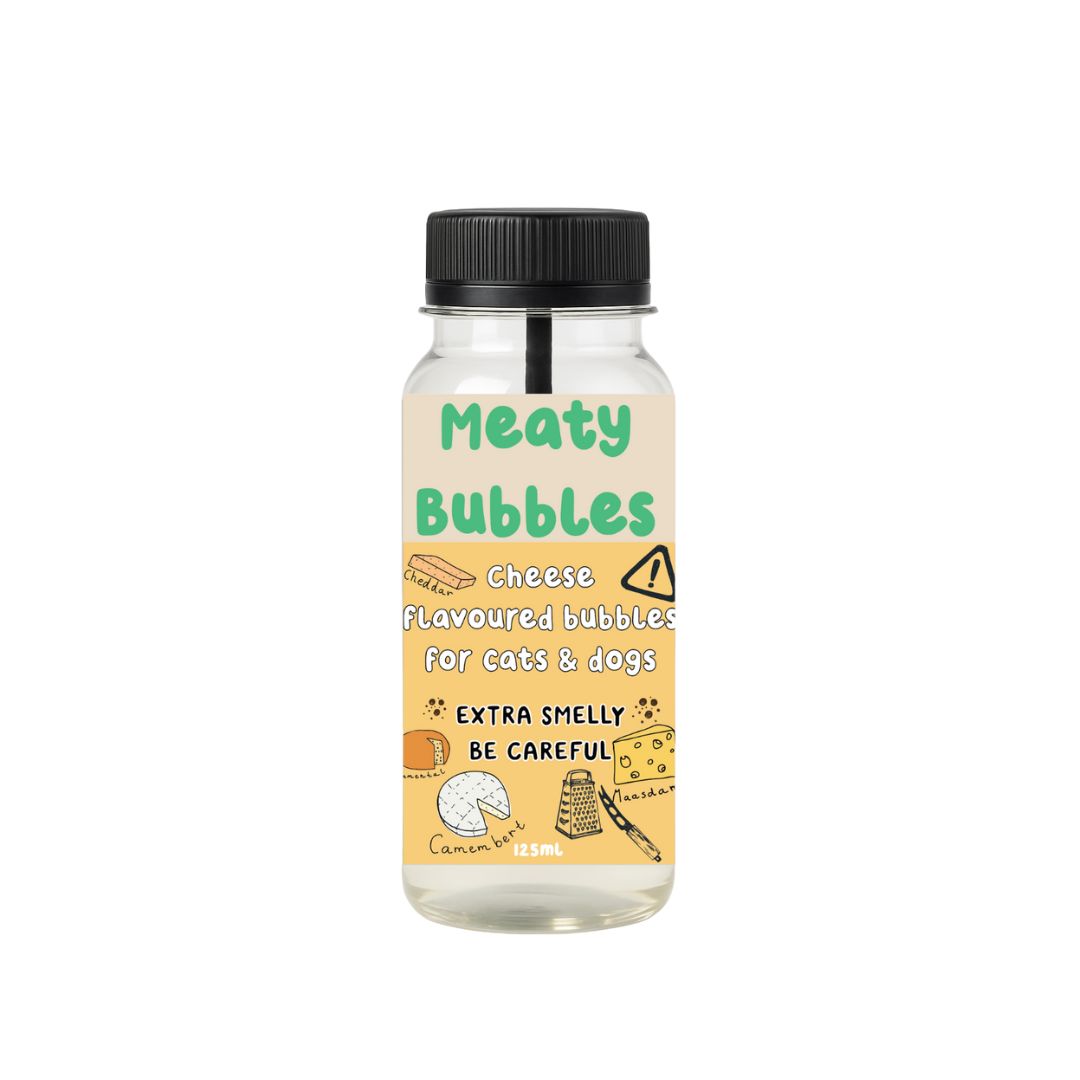 Treat your furry friend to a burst of fun with Meaty Bubbles in Cheese. These pet-safe bubbles are non-toxic, vegan, and gluten-free, making playtime both exciting and worry-free. Handcrafted in a clean room facility in North Wales, UK, every bottle delivers high-quality, flavorful bubbles your pet will love to chase and pop. With new flavors launching regularly, Meaty Bubbles bring a whole new level of joy to playtime.