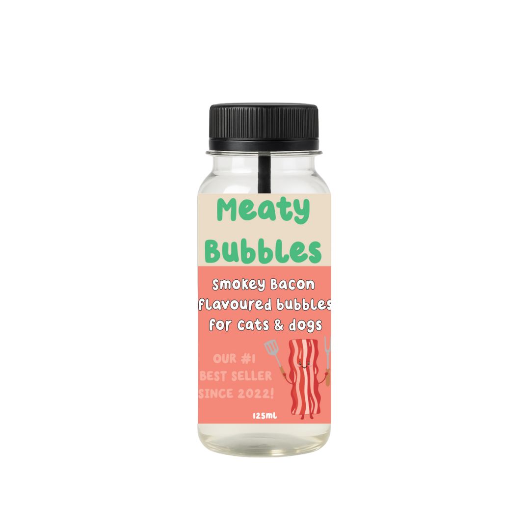 Treat your furry friend to a burst of fun with Meaty Bubbles in Smokey Bacon. These pet-safe bubbles are non-toxic, vegan, and gluten-free, making playtime both exciting and worry-free. Handcrafted in a clean room facility in North Wales, UK, every bottle delivers high-quality, flavorful bubbles your pet will love to chase and pop. With new flavors launching regularly, Meaty Bubbles bring a whole new level of joy to playtime.