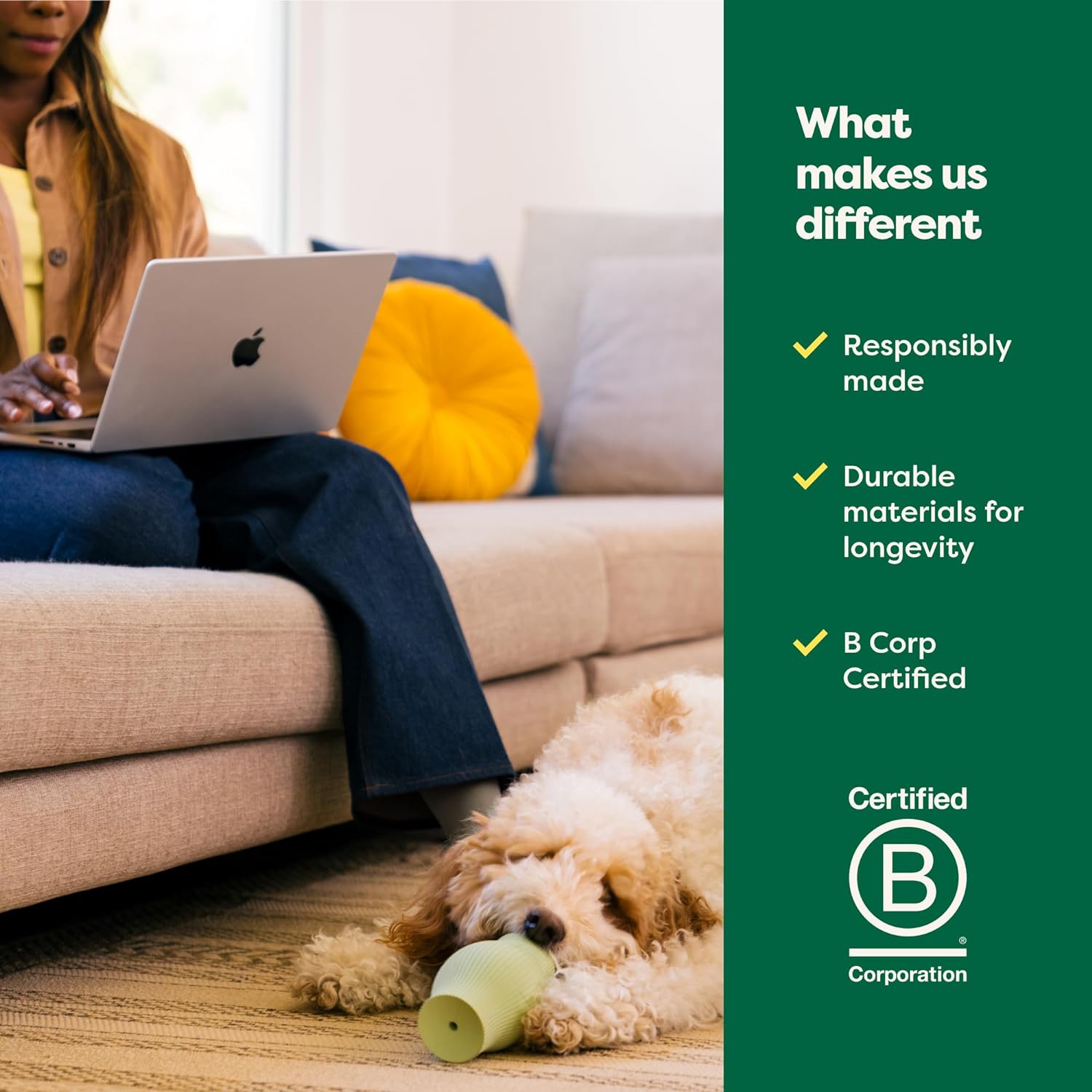 This smart toy dispenses your dog’s favorite treats or kibble as they paw, roll, and nibble. Built from responsibly sourced natural rubber, its wobbling, unpredictable motion keeps pups mentally engaged—and physically active. Plus, it’s freezer- and dishwasher-safe, which means you can add a chilled reward on warm days and clean it in a snap.