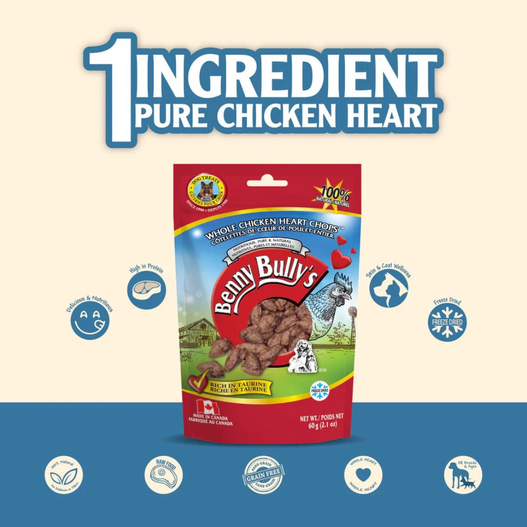 Benny Bully's Whole Chicken Heart Chops Dog Treats - 60 g