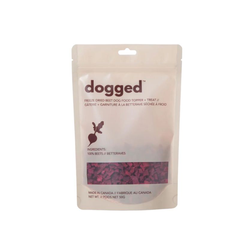 Unleash natural goodness with our Freeze-Dried Beets Topper — a single-ingredient treat that’s all about simple nutrition and vibrant flavor. Made from 100% freeze-dried beets, this topper offers a crunchy texture dogs adore, while providing benefits like prebiotic fiber to support gut health and betalain antioxidants to promote circulation, liver function, and overall vitality. Perfect as a food topper, training treat, or snack in between meals. Made in British Columbia at an FDA-registered, human-grade facility, this beet topper packs lots of goodness in a 50 g bag — mighty in minerals, gentle on the tummy.