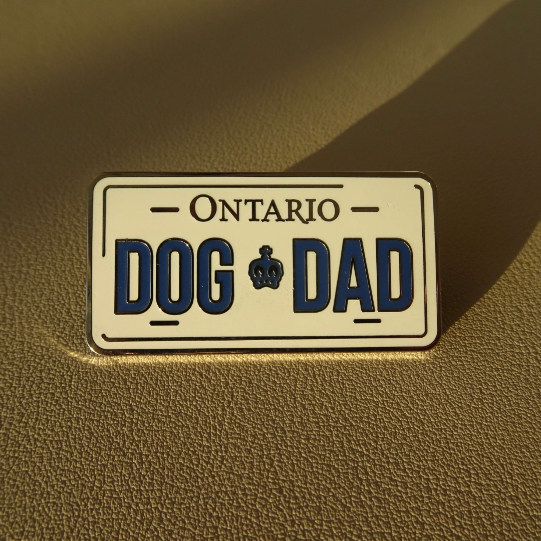 Celebrate your dog-dad status with extra style. This sleek silver enamel pin resembles a mini license plate with “Dog Dad,” so you can wear your pup-proud heart on your lapel (or jacket).