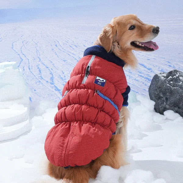 Keep your pup cozy and cool with this bold, color-blocked puffer. The Ice Field Padding combines lightweight warmth, water-repellent fabric, and a soft fleece lining—perfect for chilly walks or seaside strolls. Designed with a side zipper, adjustable fit, and reflective details for style that moves (and shines) with your dog.