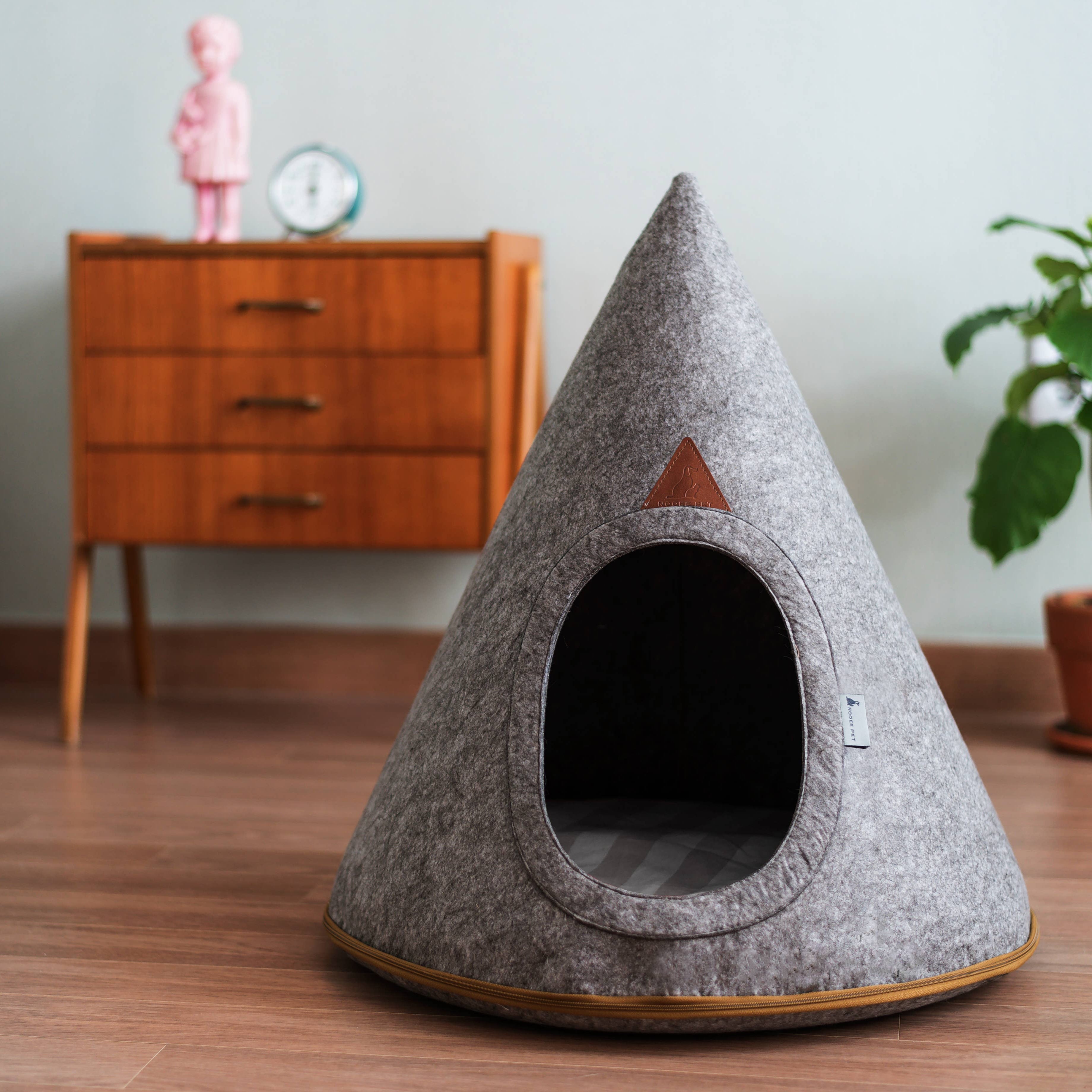 A sleek, modern retreat for pets who enjoy their own cozy, enclosed space. With its sculptural cone shape and soft oval opening, this lightweight pet home offers a sense of calm and security. It’s thoughtfully designed for comfort, convenience, and timeless style—making it a functional accent for any interior.