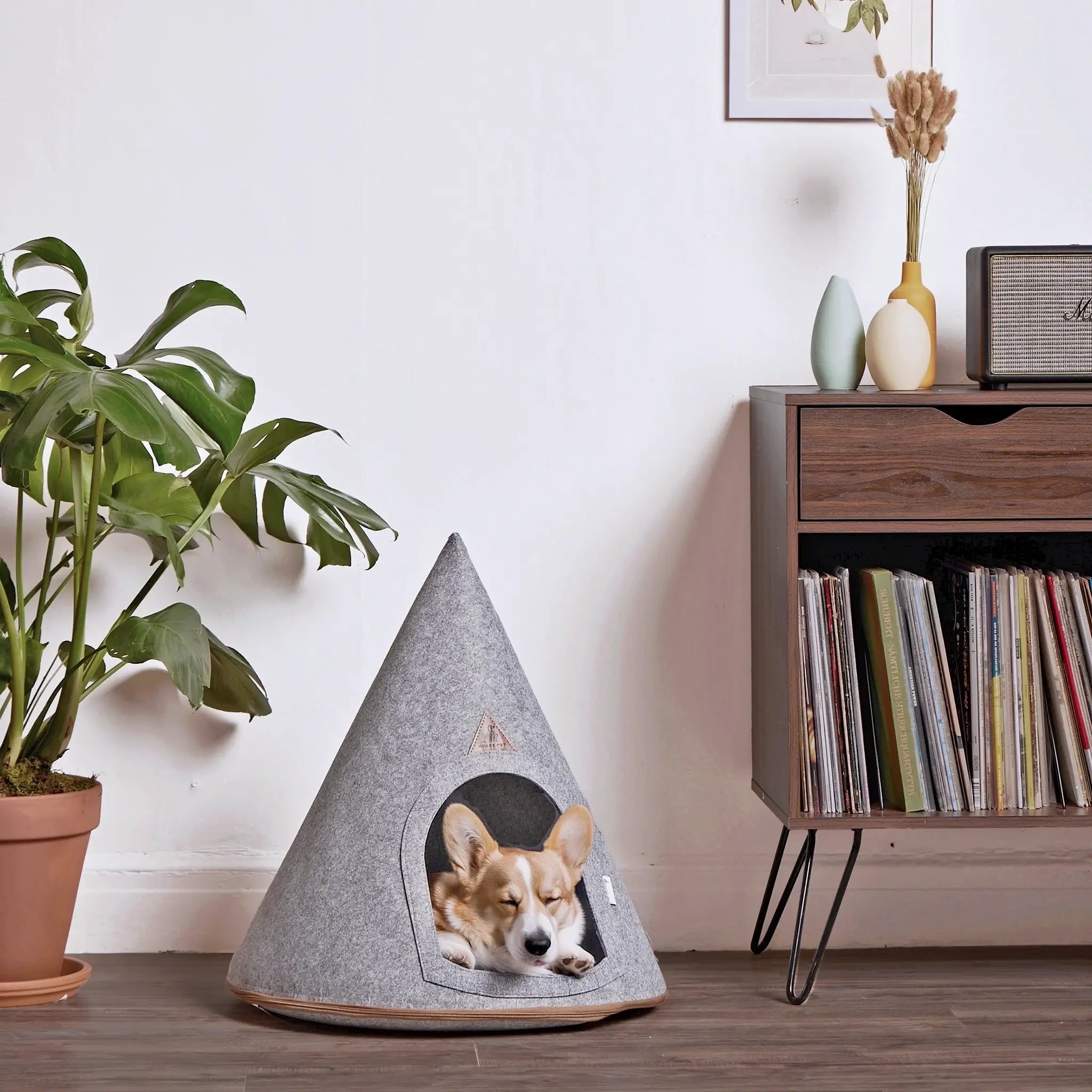 A cozy, minimalist retreat for small pets who crave comfort and security. With its soft, conical structure and inviting arched entrance, this modern pet home creates a calm hideaway that fits seamlessly into any space. Lightweight, foldable, and designed for everyday ease, it’s the perfect blend of comfort and convenience—whether at home or on the go.