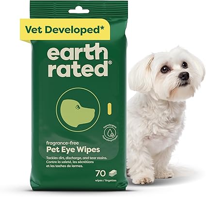 Earth Rated Pet Eye Wipes, Fragrance Free - 60 Count